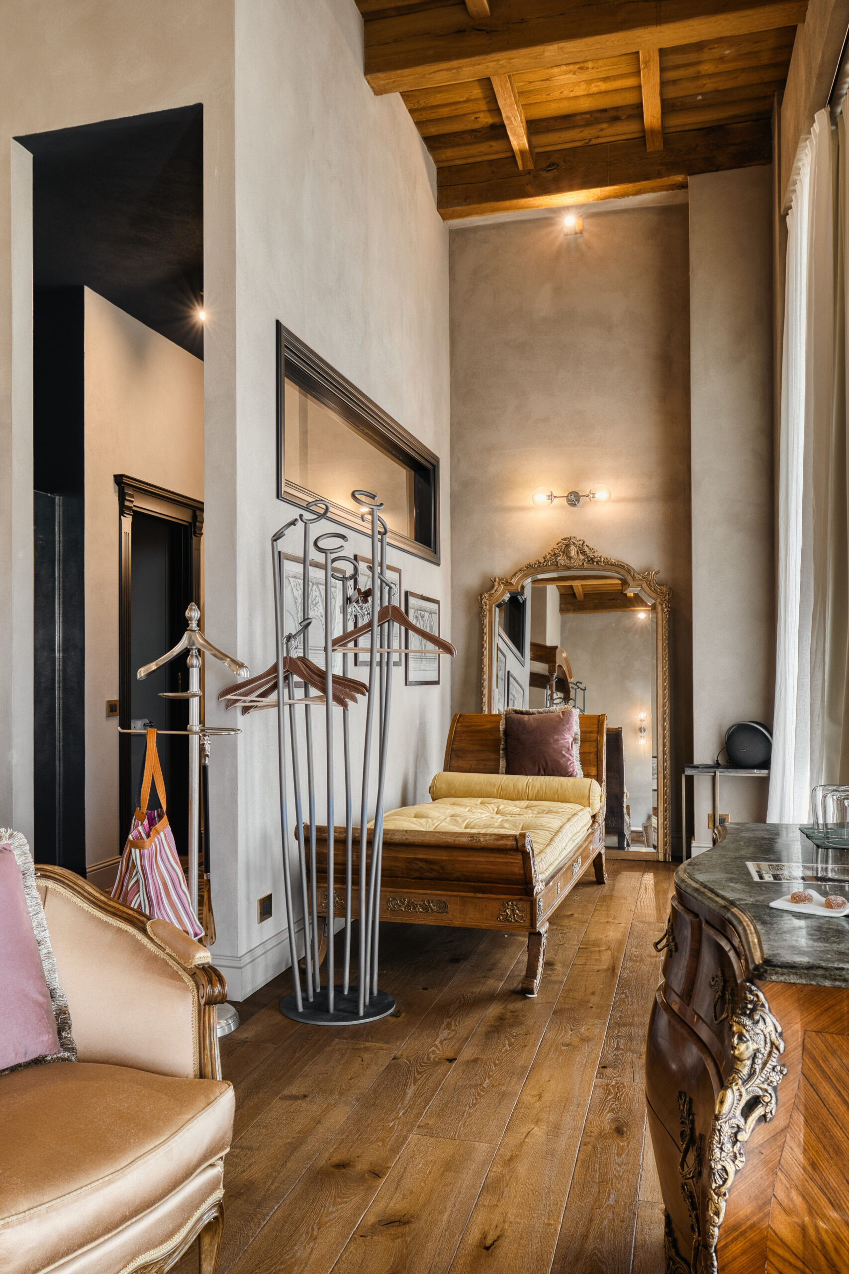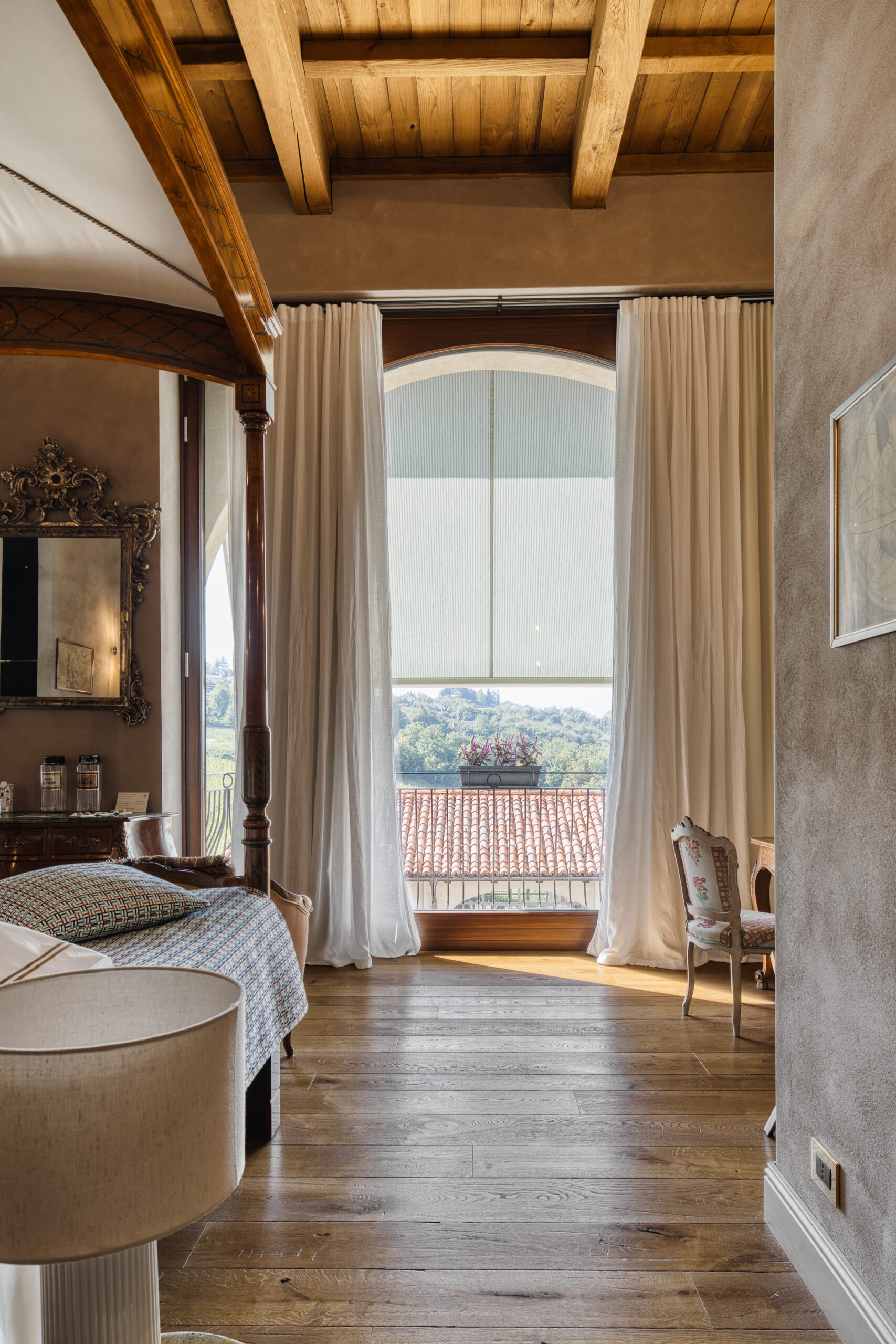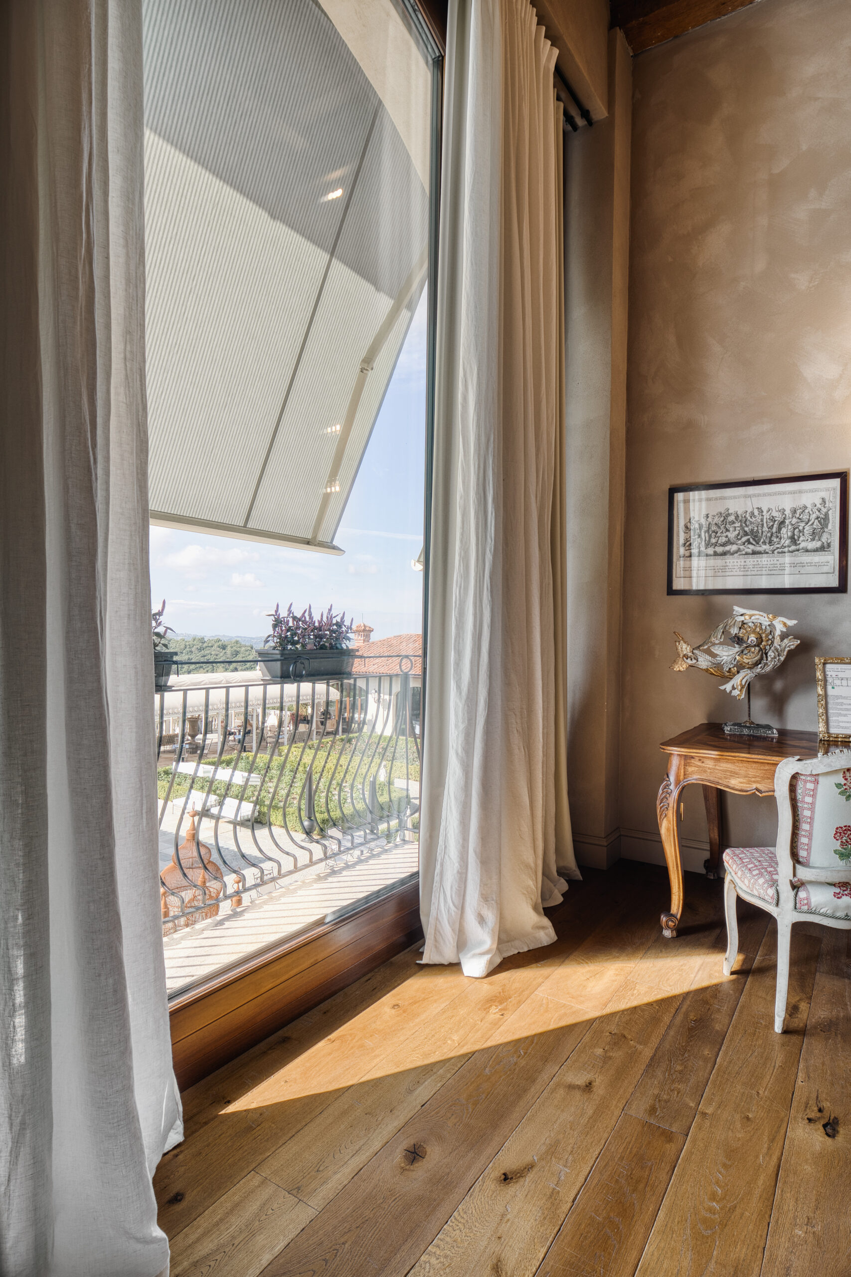 Suite of about 45 square meters. King size bed, small terrace overlooking the garden, coffee and tea machine, Bluetooth speaker.